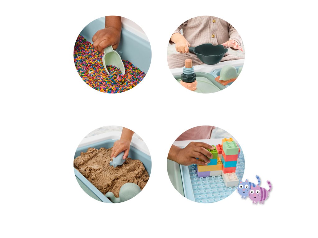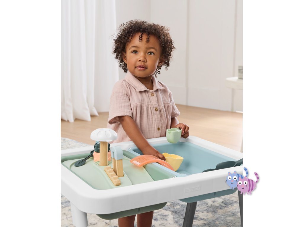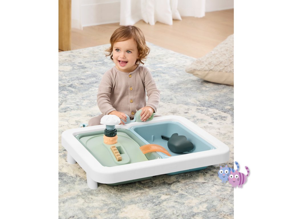 Skip Hop 24-dílná sada smyslového stolku, vyvinutá ve spolupráci s odborníkem na smyslové hry, nabízí dětem neomezené možnosti objevování, učení, tvoření a hraní. Časné objevování, navržené tak, aby rostlo s vaším děťátkem, začíná hraním na podlaze a přiloženými nástroji (dřevěné kleště a válečky, naběračky, lopatka a další) – dají se použít mnoha způsoby. Když vaše dítě vyroste, přidejte k němu nohy stolu a experimentujte s výplněmi, jako je písek, suché těstoviny, voda, hlína a další nalezené předměty. Třídit, vyřezávat, nabírat, nalévat a ještě více – napněte svou představivost a vytvořte praktickou zemi pro smyslové hry a objevování. Potřebujete nápady?