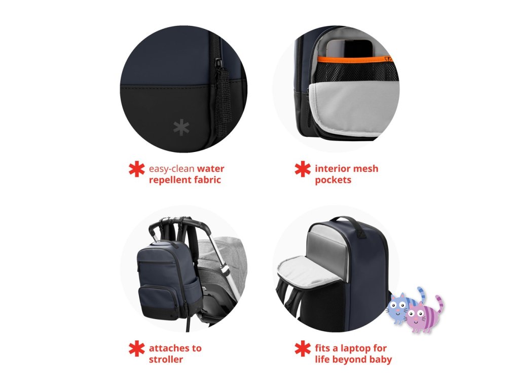 - Obsahuje přebalovací podložku a popruhy na kočárek.