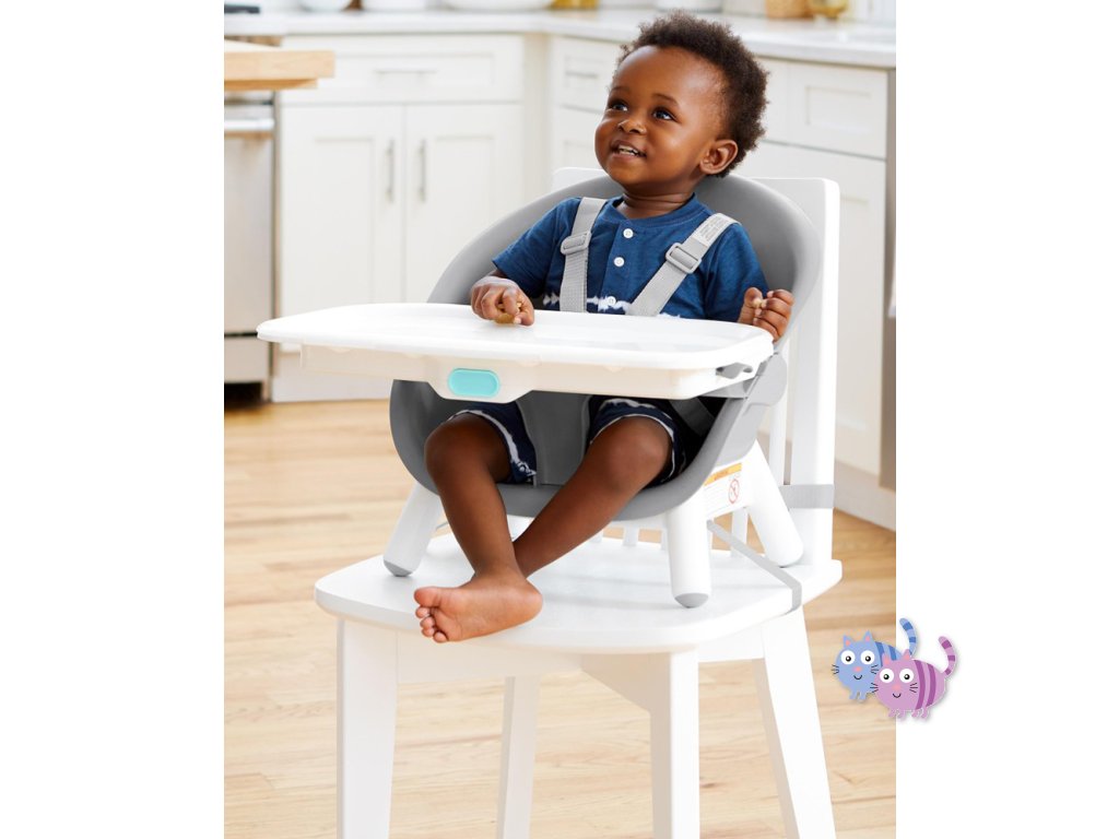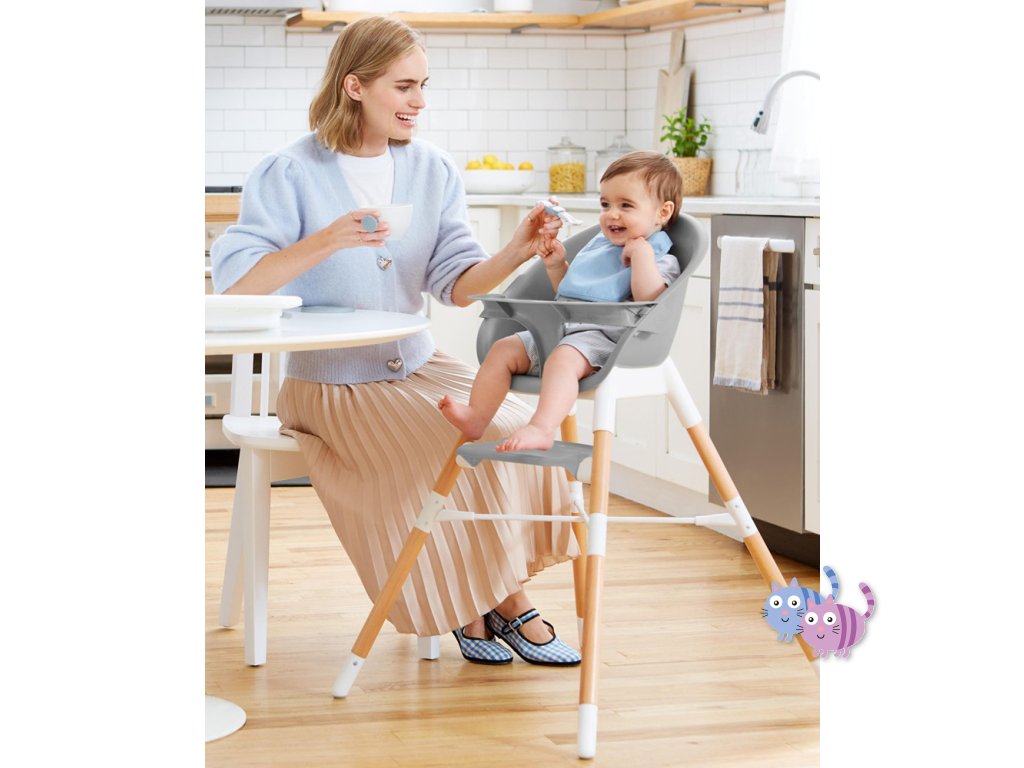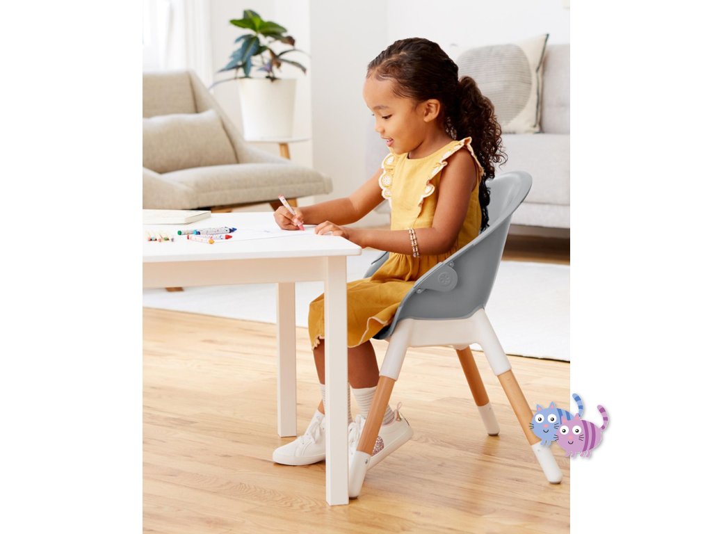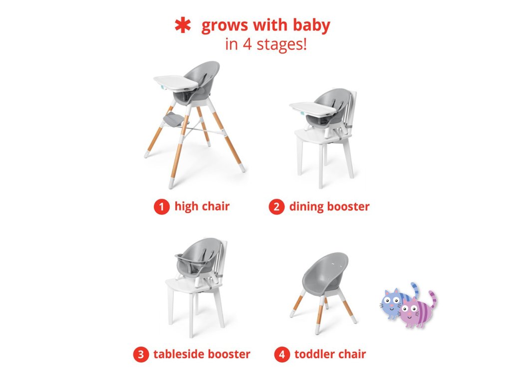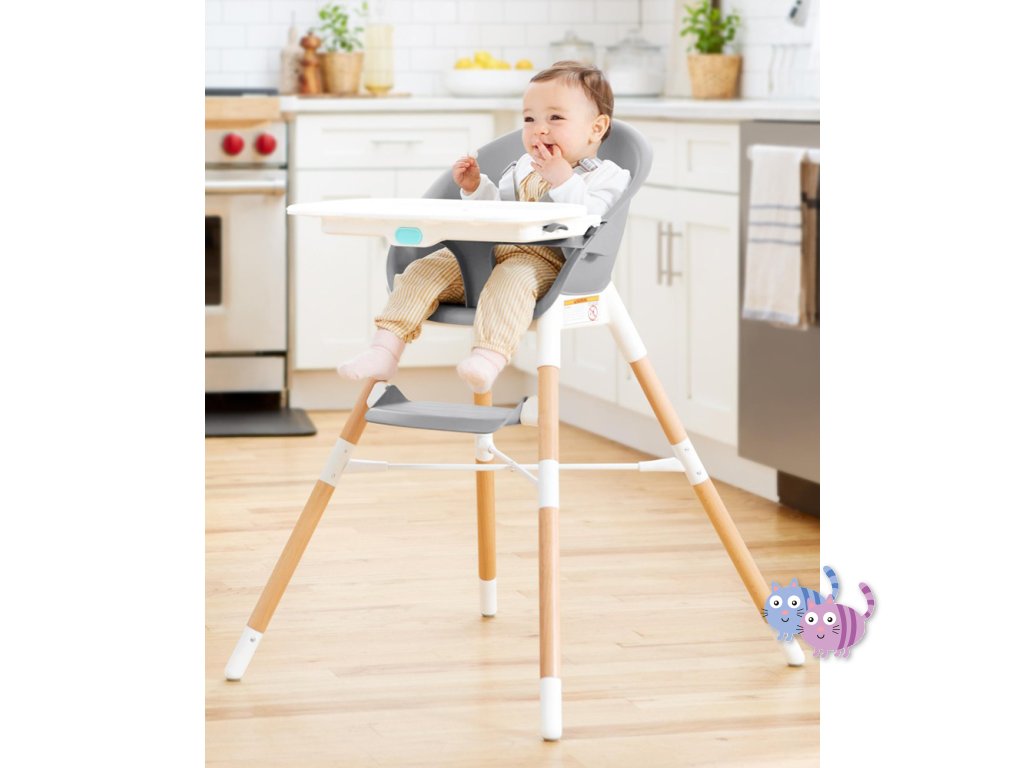 Jídelní židlička EON 4v1 se přizpůsobí věku a potřebám dítěte, takže ji můžete používat několik let. Elegantní, moderní a prostorově úsporný design dokonale zapadne do každého interiéru. Skip Hop EON má inovativní design s bukovými nohami, elegantním šedým sedadlem, vaničkou a dvoupolohovou šedou opěrkou nohou. Tác na vysoké židli je odnímatelný a nastavitelný. Židličku lze používat 4 různými způsoby: jako vysokou jídelní židličku do hmotnosti dítěte 15 kg, vysokou židličku s podnosem, samostatnou vysokou židličku pro jídlo u stolu a vysokou židličku nebo křesílko vhodné pro děti do 5 let nebo 36 kg.