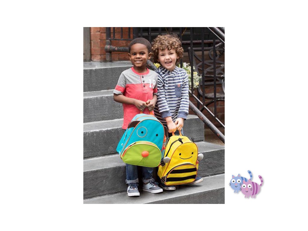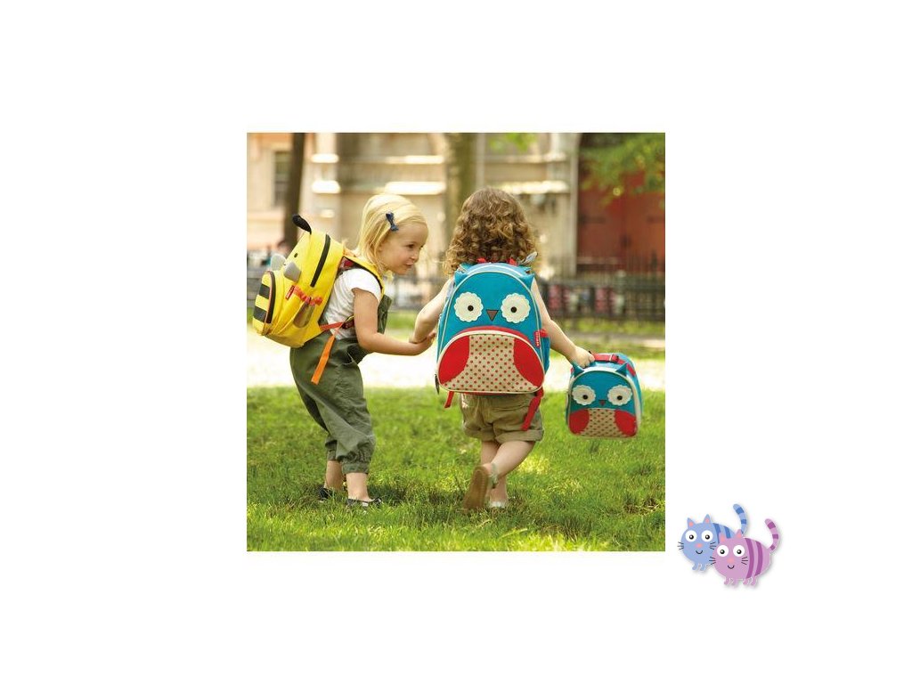 Krásný batůžek ve stylu SKIP HOP. Propracované detaily batůžku ladí s veselými motivy na zipu. Přední oddělená kapsa ideální na svačinku s extra kapsičkou na pastelky a pro další nezbytnosti na cesty. Prostorná postranní síťovaná kapsa na pití. Pohodlné nastavitelné polstrované ramenní popruhy. Ucho pro přenášení. Jednoduchá údržba.