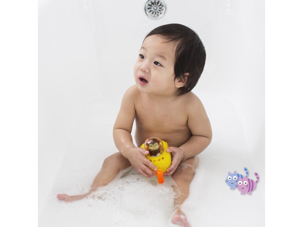Ponorku řídí odvážná opička. Stačí jen zatáhnout a motor se roztočí. Koupání nebylo nikdy tak zábavné.