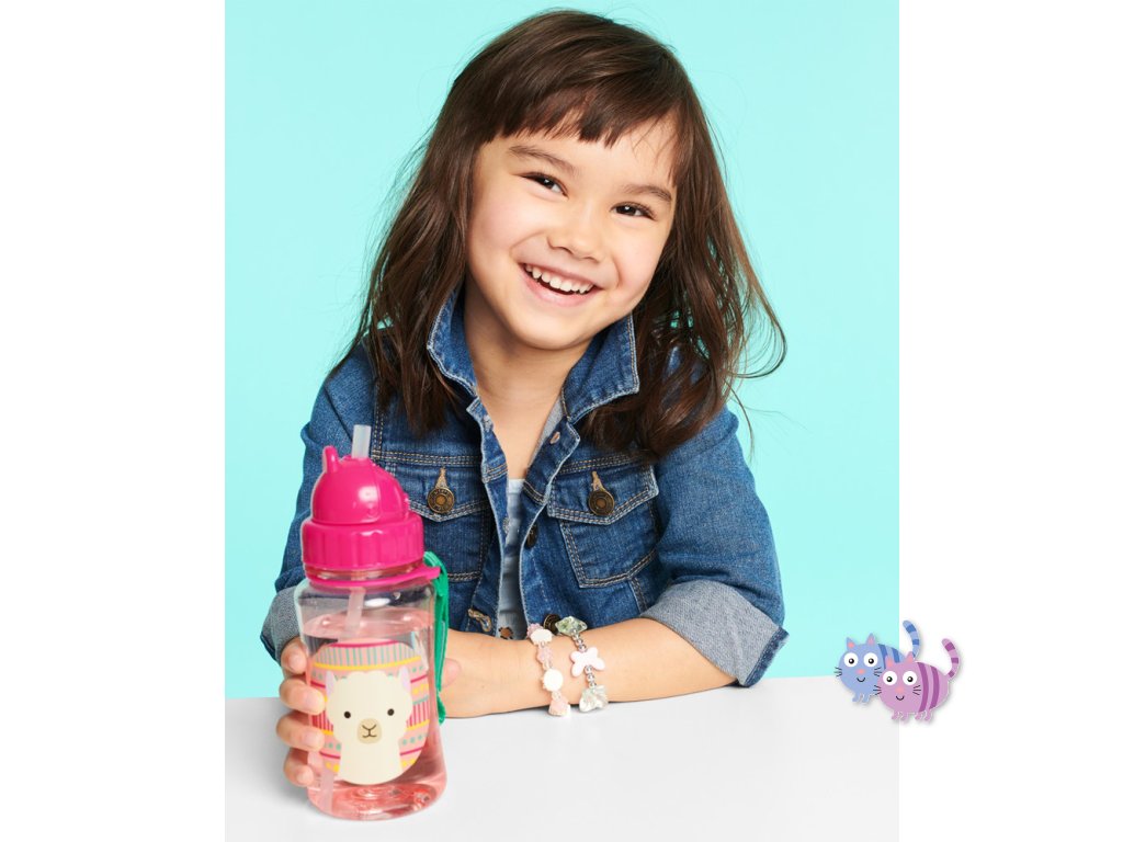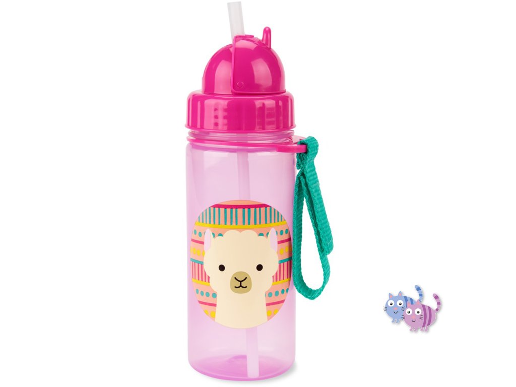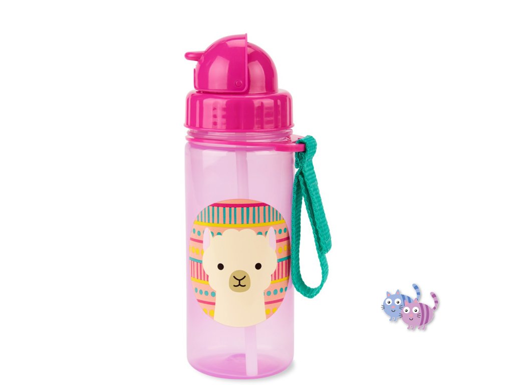Krásná a praktická lahvička z kolekce ZOO, s brčkem, zavíracím víčkem, praktickým páskem na suchý zip.