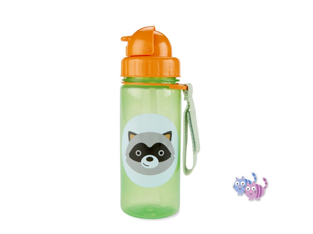 Krásná a praktická lahvička z kolekce ZOO, s brčkem, zavíracím víčkem, praktickým páskem na suchý zip.