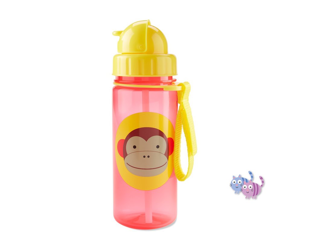 Krásná a praktická lahvička z kolekce ZOO, s brčkem, zavíracím víčkem, praktickým páskem na suchý zip.