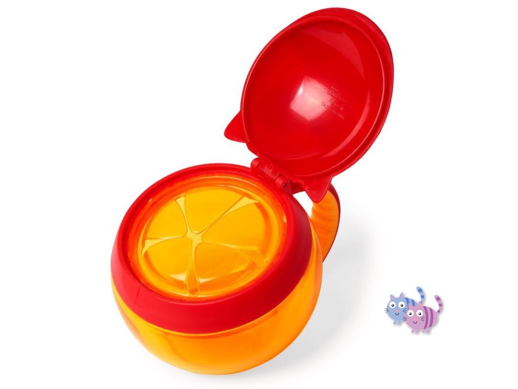Chytrý nápad na cesty. Kalíšek má víčko, které po otevření drží, před vysypáním obsahu jej chrání pružné lamely, které pustí dětskou ručičku dovnitř, ale nepustí svačinku ven. Kalíšek je průhledný, aby se mohl zavčasu doplnit. Na boku je praktické ouško v dětském rozměru, pomocí kterého lze kalíšek připevnit i na kočárek či tašku. 0 % BPA, 0 % PVC, bez ftalátů. Obsah: 222 ml. Průměr: 10 cm