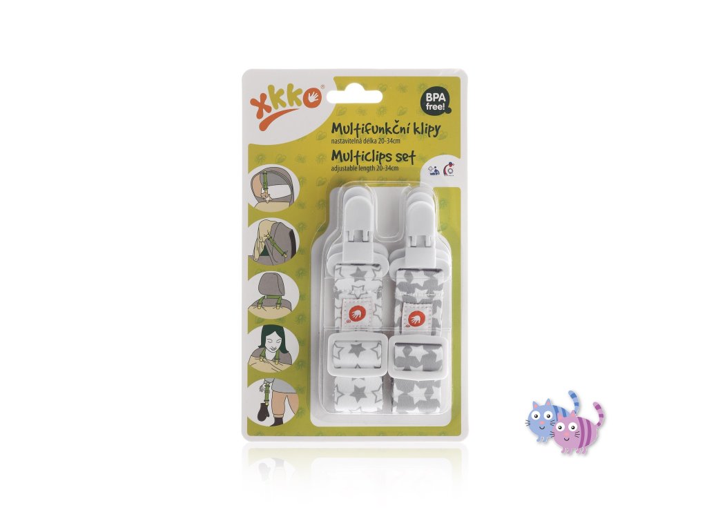 "Multifunkční klipy mohou být použity k uchycení hraček, ubrousků, látkových plen, osušek deky nebo částí oblečení. Prostě všude tam, kde potřebujete něco zajistit."