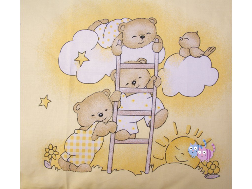 Souprava obsahuje: povlečení na peřinku 120 x 90 cm, povlečení na polštář 60 x 40 cm a ochranný límec okolo 2/3 postýlky.