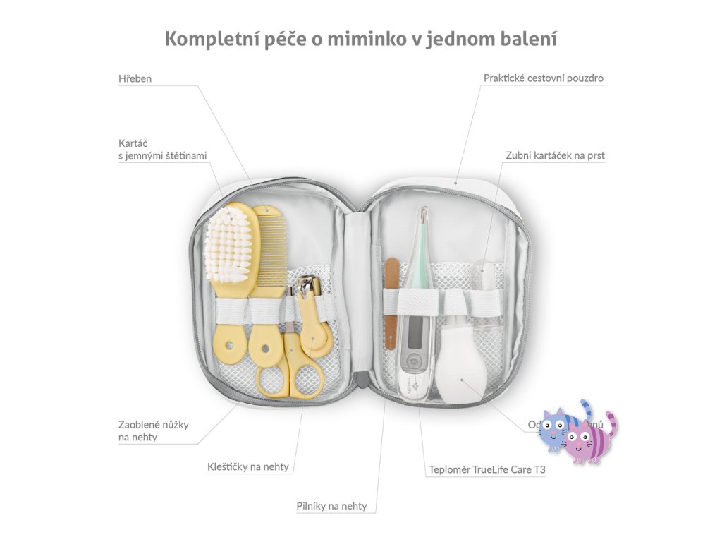 Každý rodič dobře ví, že když přijde do rodiny miminko, je potřeba zařídit a pořídit spoustu věcí pro jeho maximální pohodlí. Některé z nich již ale nemusíte shánět jednotlivě. Nový praktický set TrueLife BabyKit obsahuje vše pro péči o nehty a vlásky a nechybí ani teploměr TrueLife Care T3 či odsávačka hlenů.