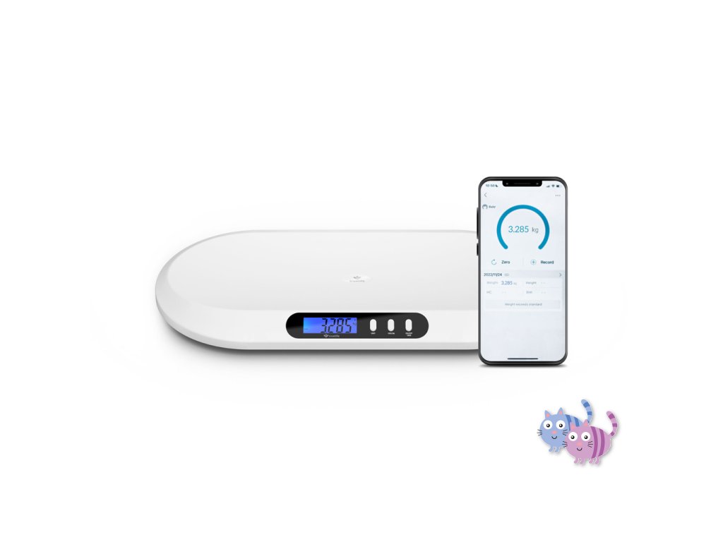 Vážení lze provádět v kg i lb, výsledky jsou ihned viditelné na podsvíceném LED displeji. To, jak se dítě vyvíjí v čase, umožňuje přehledně sledovat aplikace, která je kompletně v češtině. Velice chytrou funkcí je TARE, díky ní zvážíte miminko i zabalené v dece či oblečené.
