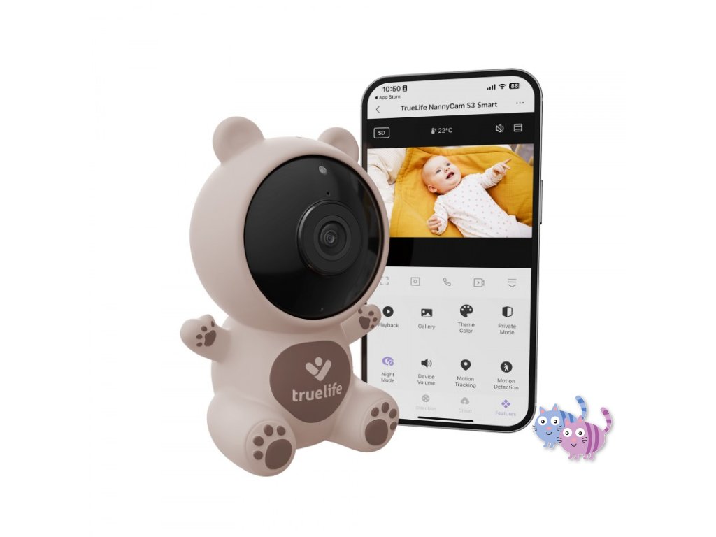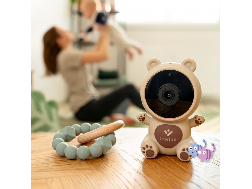Hlídat svůj největší poklad nyní můžete díky chytré digitální chůvičce TrueLife NannyCam S3 Smart. Malá přenosná kamera se ukrývá v silikonovém těle s designem roztomilého medvídka. V dětském pokojíčku tak přirozeně a dokonale splyne s dalším vybavením. Chůvičku navíc lze díky přiloženému ohebnému držáku uchytit kamkoli a v noci umí posloužit i jako lampička jemně osvětlující dětské království. Pro lepší usínání přehraje děťátku vybranou ukolébavku nebo je možné využít možnosti obousměrné komunikace, kdy děťátko v případě potřeby uklidníte vlastním hlasem. Medvědí strážce komunikuje prostřednictvím dobře zabezpečené TrueLife Smart aplikace, kterou si jednoduše stáhnete do vašeho telefonu. Ve Full HD kvalitě pak odkudkoli a díky nočnímu vidění i ve tmě vidíte vše, co se v pokojíčku děťátka děje. Klidně k aplikaci připojíte pohodlně až 16 kamer a neomezený počet uživatelů. Celá rodina tak při chytrém rozmístění kamer může sledovat i pokroky děťátka, ať už se hraje nebo dělá první krůčky. Z chůvy lze pořídit také záznam či fotografii a okamžitě vás upozorní, zda detekuje pohyb, zvuk nebo změnu teploty v místnosti.