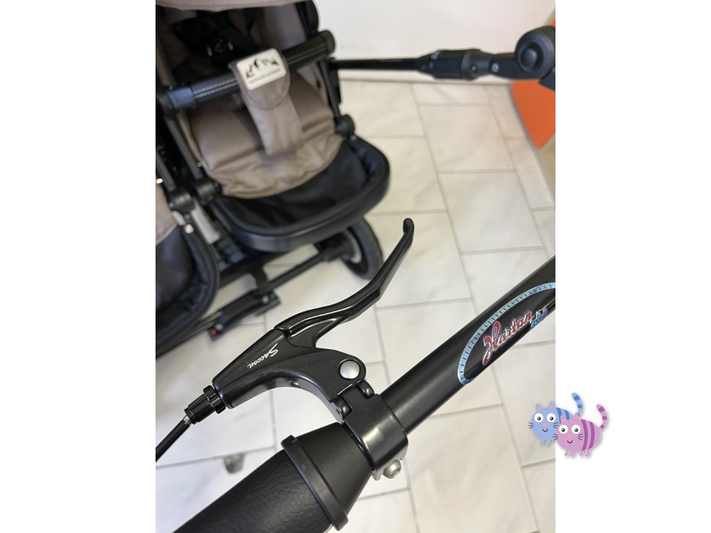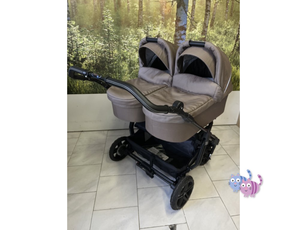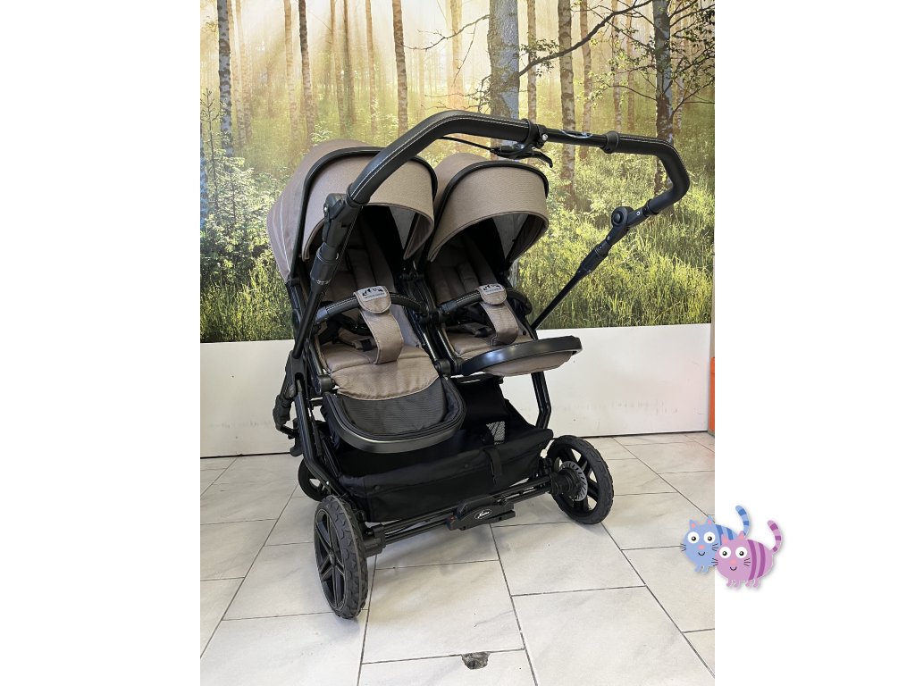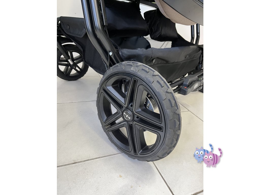Kočárek měří na šířku 79,5 cm. Dá se na něj nacvaknout 2 autosedačky (po dokoupení adaptérů), 2 korby nebo 2 sportovní sedačky různými směry.